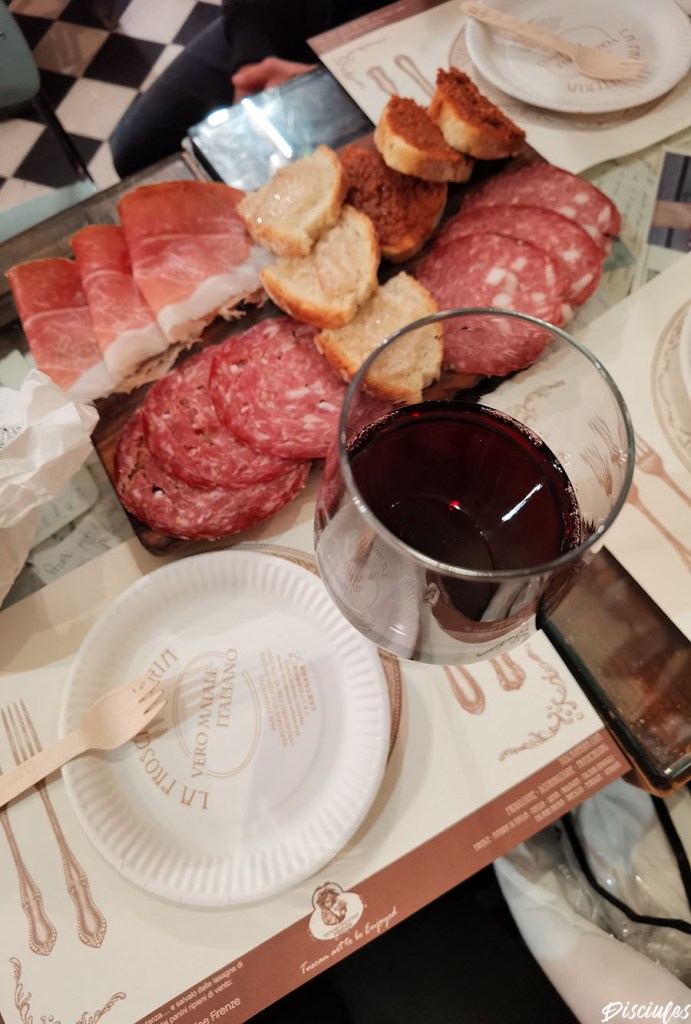 Il tour che ho scelto si chiama Firenze: tour gastronomico con vino locale e bistecca alla fiorentina e siamo partiti da una delle più famose enoteche per un assaggio di vino e salumi per poi dirigerci verso L’Oltrarno per raggiungere una vecchia azienda vinicola per sorseggia alcuni dei loro deliziosi vini abbinati a tartufo, olio d’oliva e formaggio.