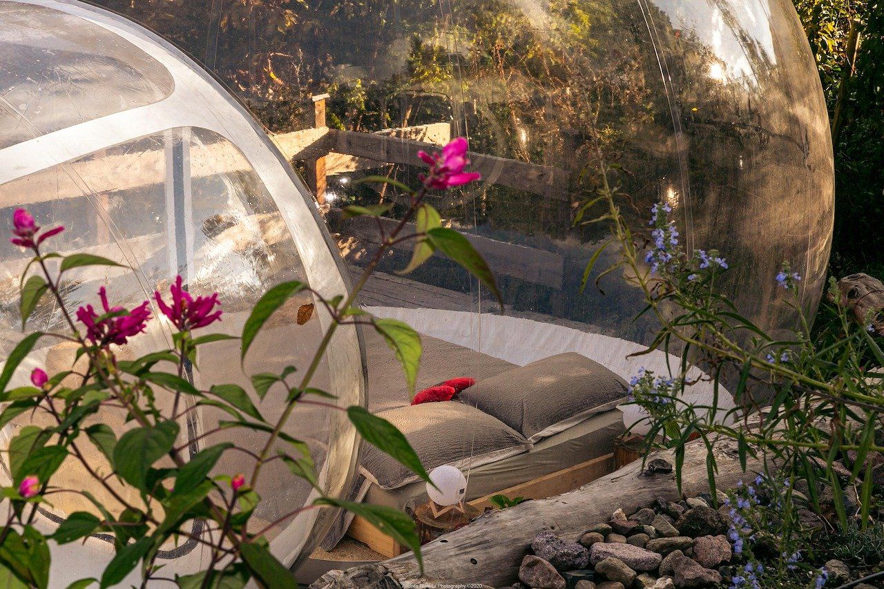 Si tratta di una struttura gonfiabile completamente trasparente che permette di dormire sotto le stelle a stretto contatto con la natura.