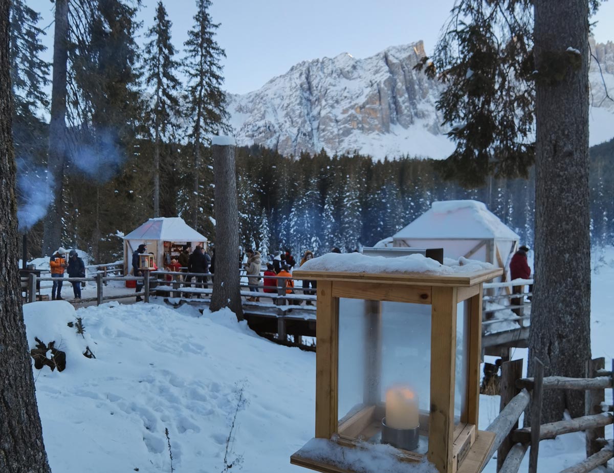Casette di legno che sembrano delle grandi lanterne, prodotti tipici e artigianali altoatesini, sculture di ghiaccio e neve che rievocano le leggende dolomitiche, un presepe a grandezza d’uomo e varie stufe a legna per riscaldarsi faranno del percorso intorno al lago un’esperienza natalizia unica! I visitatori s’immergeranno in un favoloso mondo invernale, caratterizzato da tradizioni e usi antichi e accompagnati da musica, profumi e un’ unica atmosfera natalizia. La passeggiata attorno al lago verrà liberata dalla neve e illuminata cosicché i visitatori potranno godersi una piacevole passeggiata invernale nella natura incontaminata.