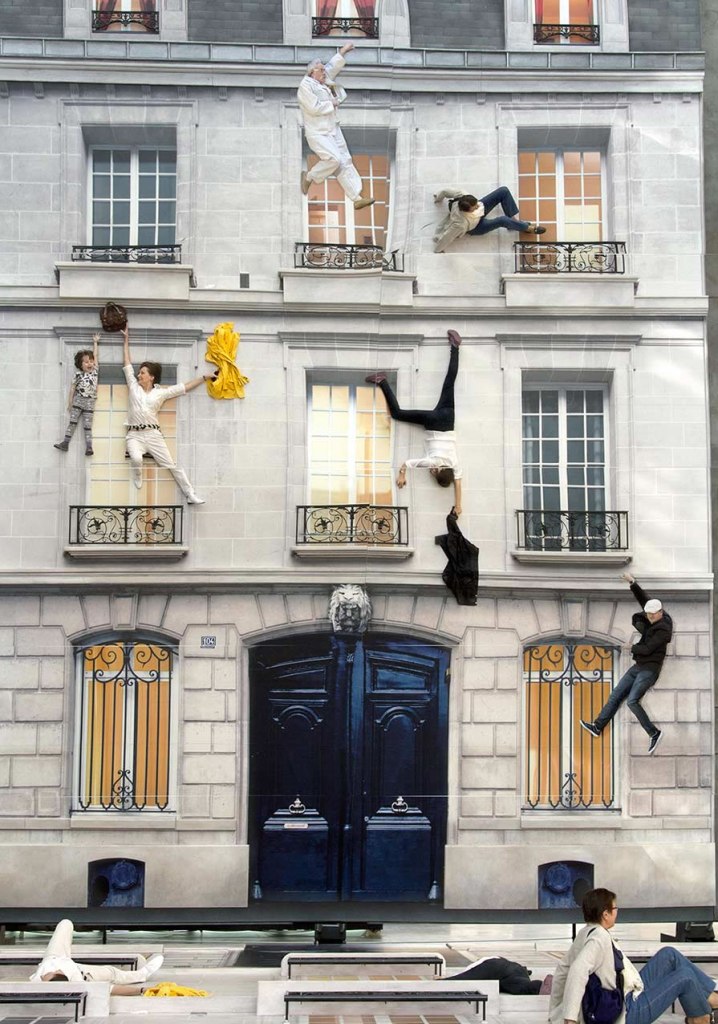 Bâtiment (2004): Facciata di un edificio appiattita sotto uno specchio sospeso a 45 gradi Dimensioni variabili Quattordici diverse facciate, ognuna specifica della città che ha ospitato l’installazione temporanea.