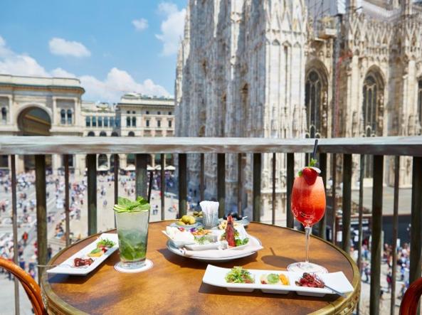 Con vista mozzafiato sul Duomo di Milano, l’aperitivo da Giacomo Argentario è possibile gustarlo direttamente sulla terrazza, con mini finger food come tartare, hamburger, scampi e gamberi, oltre ad una selezione di ostriche.
